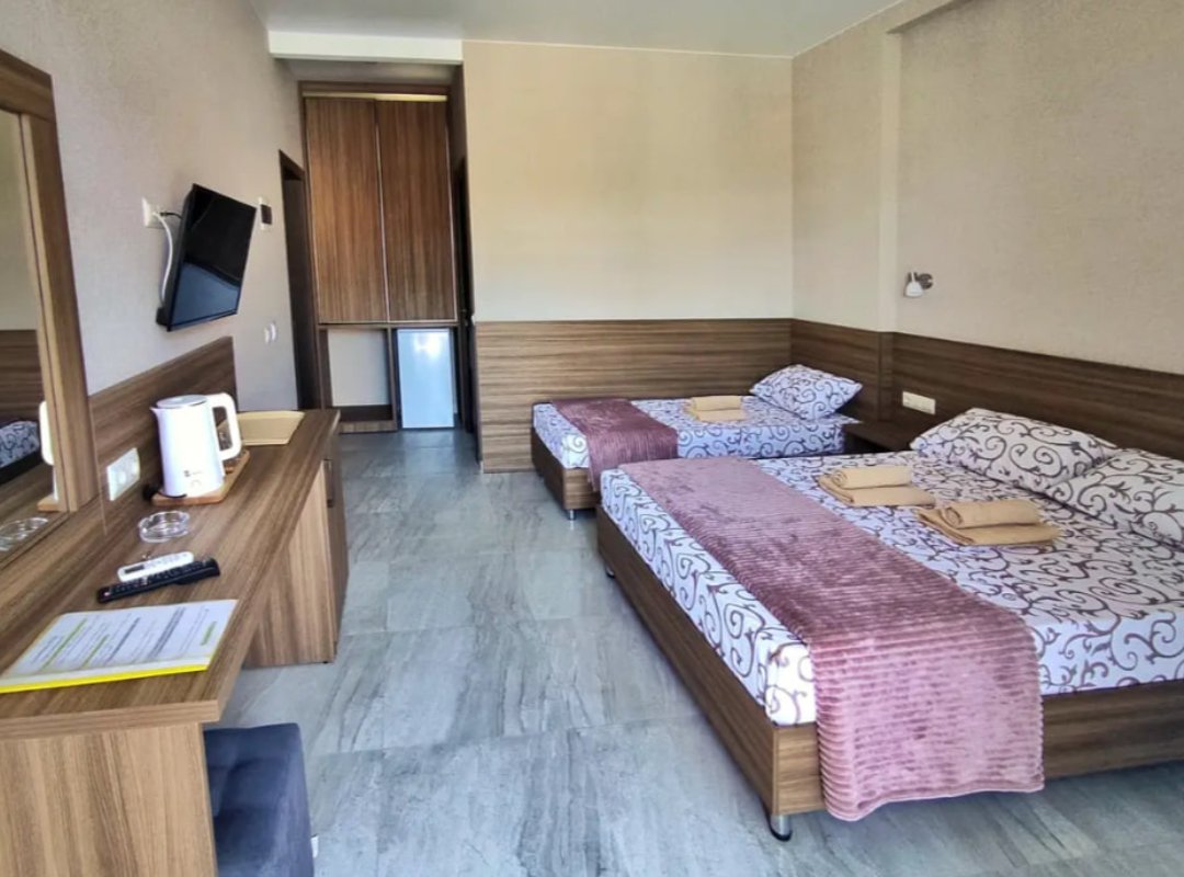 В номерах: кондиционер, холодильник, телевизор, собственная ванная комната. Балконы не во всех номерах.