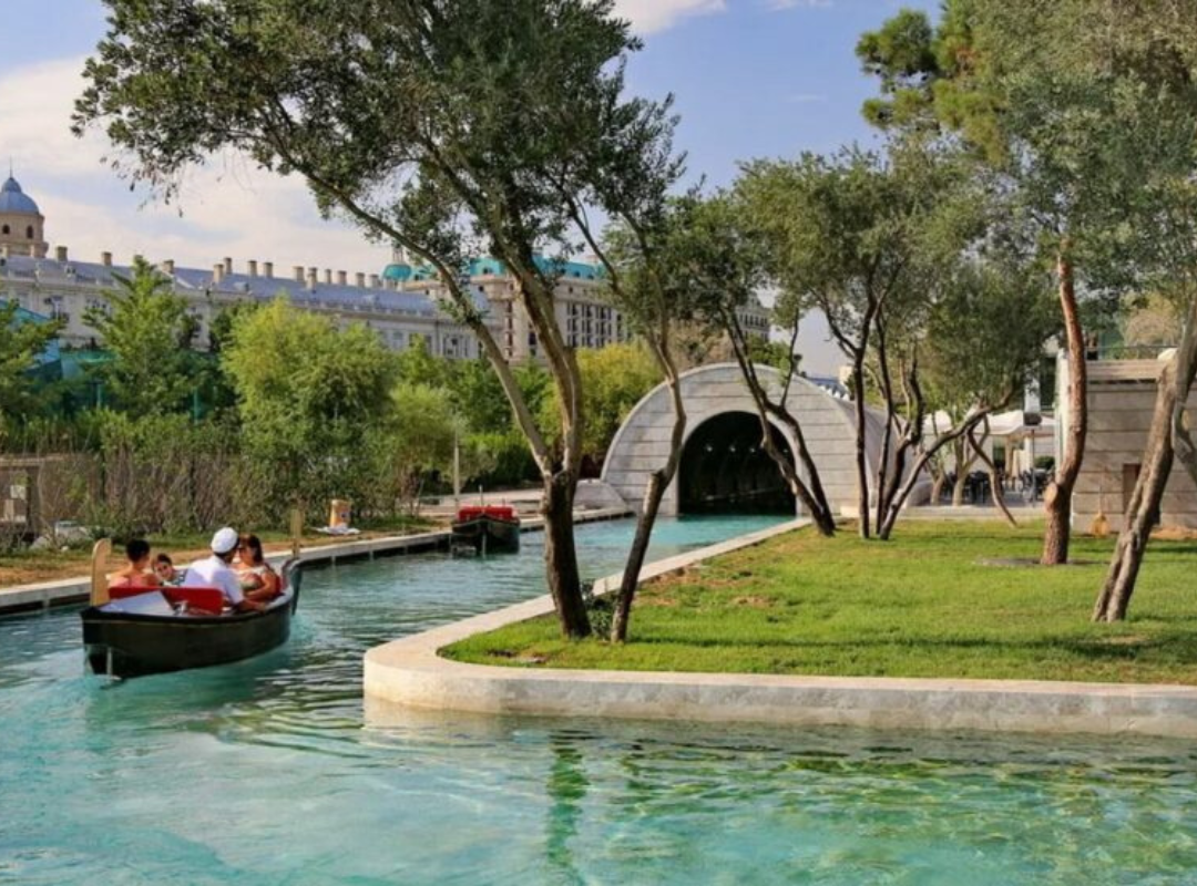 Прогулка по Маленькой Венеции - тематический парк с островами и каналами, кафе и ресторанами на приморском бульваре Баку, где можно поплавать на гандолах, украшенных в венецианском стиле по заливу.