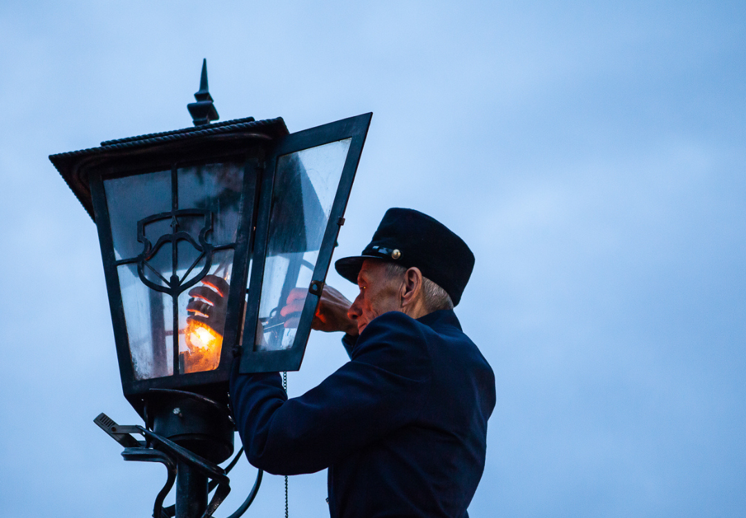 Он подходит к одному из уличных фонарей, приставляет лестницу, взбирается наверх. Через мгновение в керосинке запляшет ярко-оранжевый огонек. Потом еще один, и еще… Улица наполняется живым теплом и светом, не давая шансов сумраку омрачать настроение