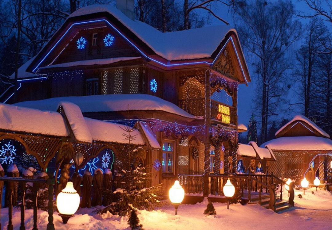 Посещение поместья Деда Мороза с развлекательной программой. В канун новогодних праздников это излюбленное место детей и взрослых. Поместье занимает почти 15 гектаров. Это одно из самых красивых мест «проживания» Деда Мороза, которых сейчас немало в мире. Украшенные ажурной резьбой домики, любовно выполненные скульптуры сказочных персонажей, нарядная новогодняя елка, гирлянды из разноцветных лампочек, сверкающих