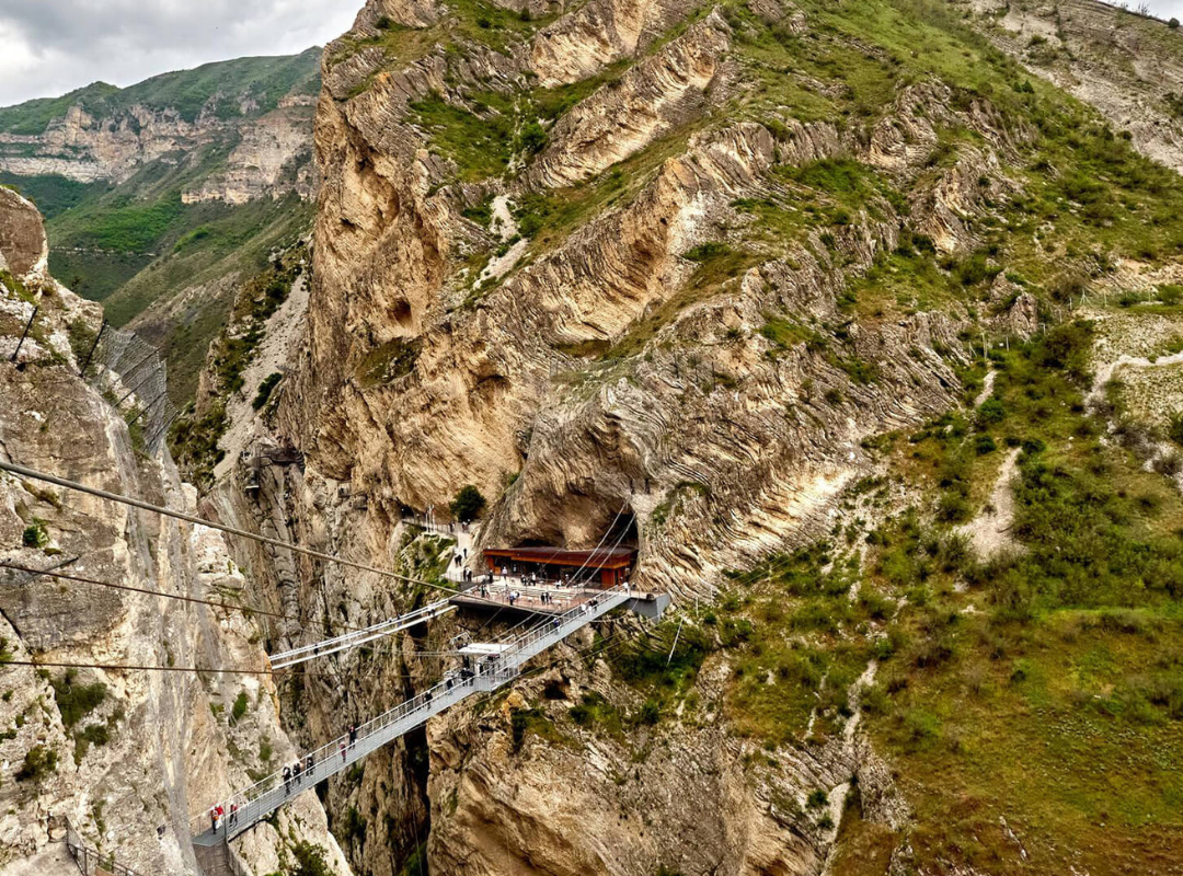 На окраине села Ново-Зубутли, в самой узкой части Сулакского каньона, заглянем в комплекс из трех пещер «Нохъо». Вы не только пройдете по скалистым лабиринтам, но и откроете для себя нерастиражированные смотровые с интересными ракурсами каньона. А также сможете прогуляться по подвесному мосту (входной билет за доп.плату 500 RUB).