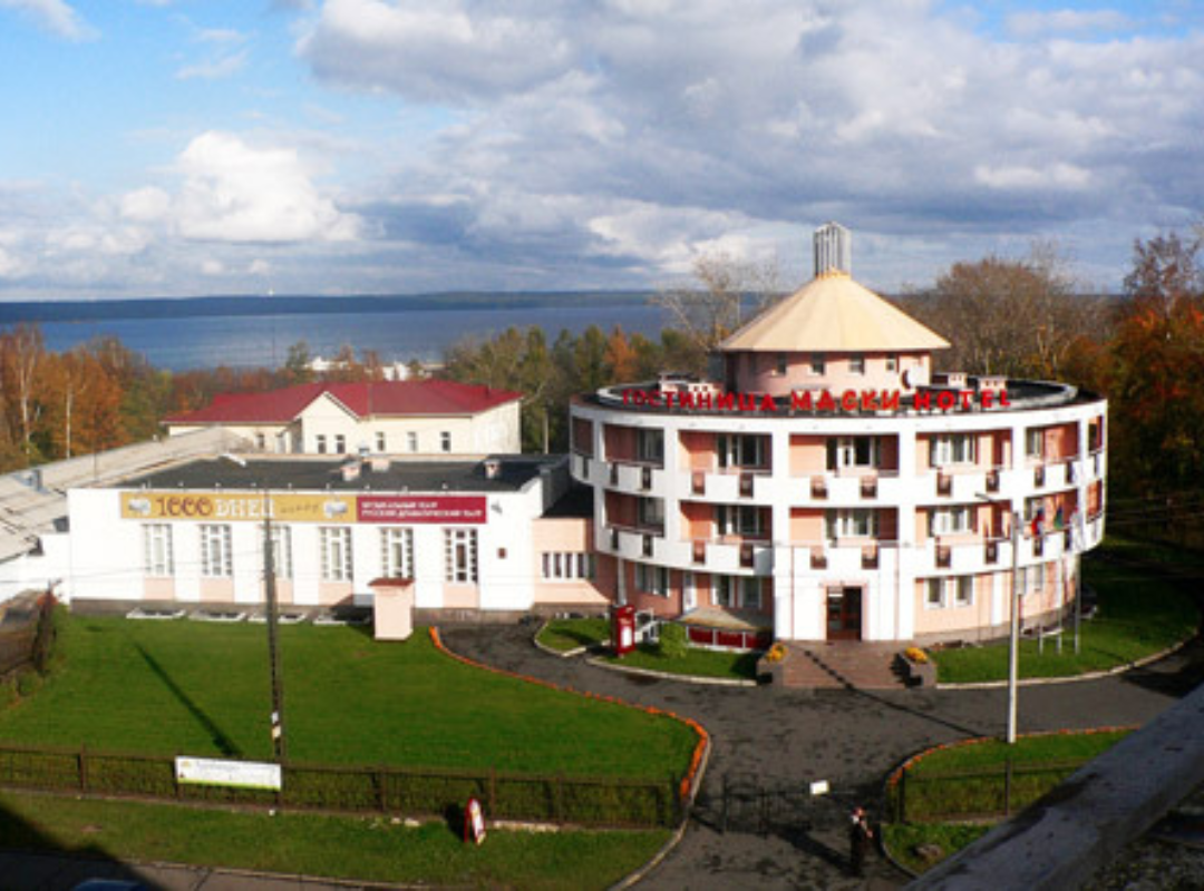 Отель «Маски» расположен в шаговой доступности от Онежской набережной и речного вокзала .Из окон гостиницы с одной стороны открывается вид на музыкальный театр Республики Карелия и центральную площадь Петрозаводска, с другой стороны - на городской парк.