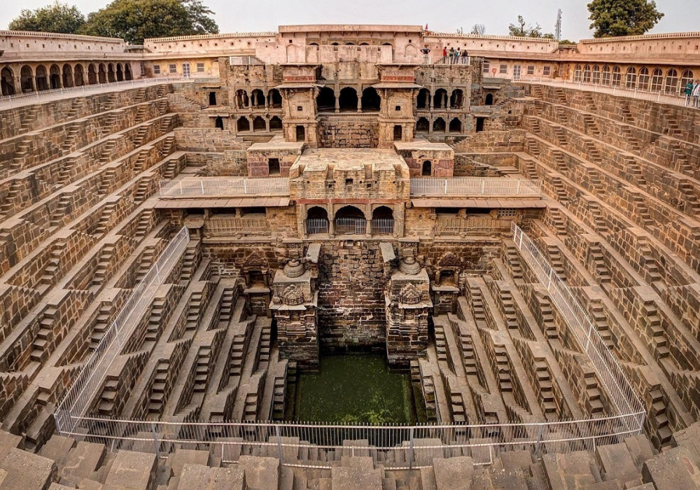 - ступенчатый колодец, построенный в VII веке: Чанд Баори. Удивительное масштабное сооружение, состоящее из тысяч ступенек, сбегающих вниз, к воде.