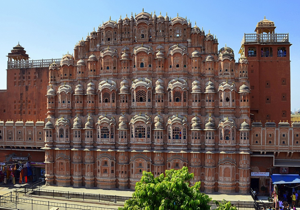 Также нас ждет внешний осмотр Хава-Махала (Дворец ветров) — пятиэтажное здание, построенное в форме венца Кришны из розового песчаника не позднее 1799 года. Причудливый фасад здания пронизан 953 крохотными оконными отверстиями, которые обеспечивали вентиляцию внутренних помещений в жаркую погоду. Дворец ветров считается символов Джайпура.