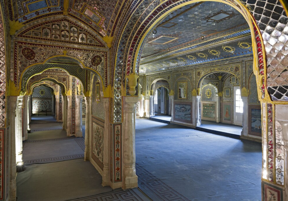 Далее нас ждет поездка во дворец Самод, построенный около 400 лет назад благородным дворянским семейством. Прогуляемся по его залам, посмотрим Зеркальный холл (его стены украшают мелкие зеркальные фрагменты) и Дурбар холл. Ощущения дивные, словно сели в машину времени и попали в другую эпоху! Интерьер выполнен в древнем стиле Раджастхана — с мраморными полами, колоннами с причудливым орнаментов и стенами, украшенными старинной мозаикой и инкрустацией драгоценными камнями, а также разнообразными росписями. Дополняет картину потрясающая резная мебелью.
