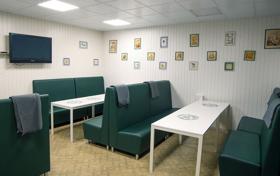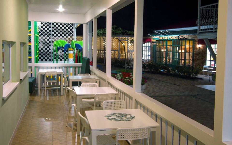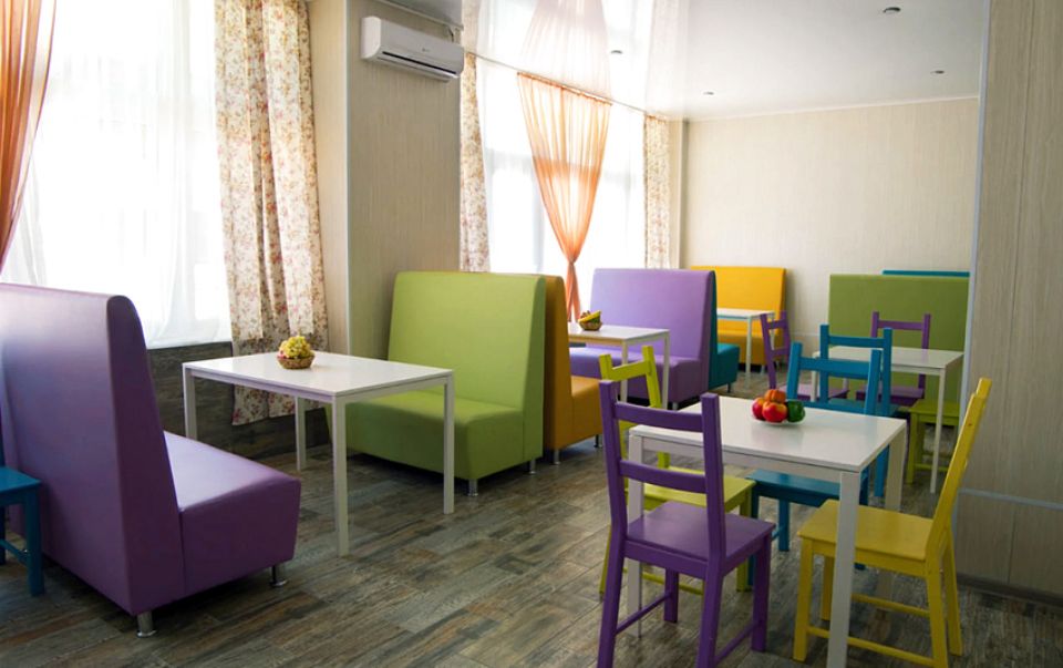Питание в уютной столовой. Завтраки (по системе – шведский стол) входят в стоимость путевки, а обеды и ужины для желающих предлагаются по выбору. На территории гостевого дома есть и отдельная зона питания, включающая кухонный блок с чайниками и микроволновками со всей необходимой посудой для приготовления чая и кофе и разогрева полуфабрикатов, уютный обеденный зал и площадку со столами и стульями на открытой террасе.