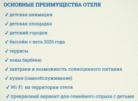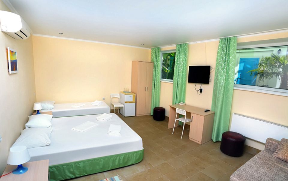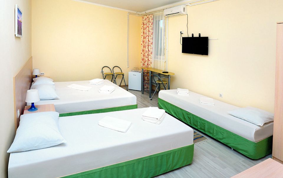 В двух основных корпусах и в третьем - новом корпусе (2024г постройки). К услугам гостей комфортабельные уютные номера, каждый из которых оснащен удобствами (душ, умывальник, туалет) холодильником, телевизором, феном, телефоном, кондиционером и комфортной мебелью. Мы предлагаем размещение в трех корпусах в шести категориях: номера ЭКОНОМ, СТАНДАРТ, СТАНДАРТ+, КОМФОРТ С БАЛКОНОМ, СЕМЕЙНЫЙ ДВУХКОМНАТНЫЙ без балкона и с балконом. Категории зависят только от расположения номера и наличия балкона.