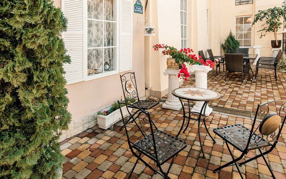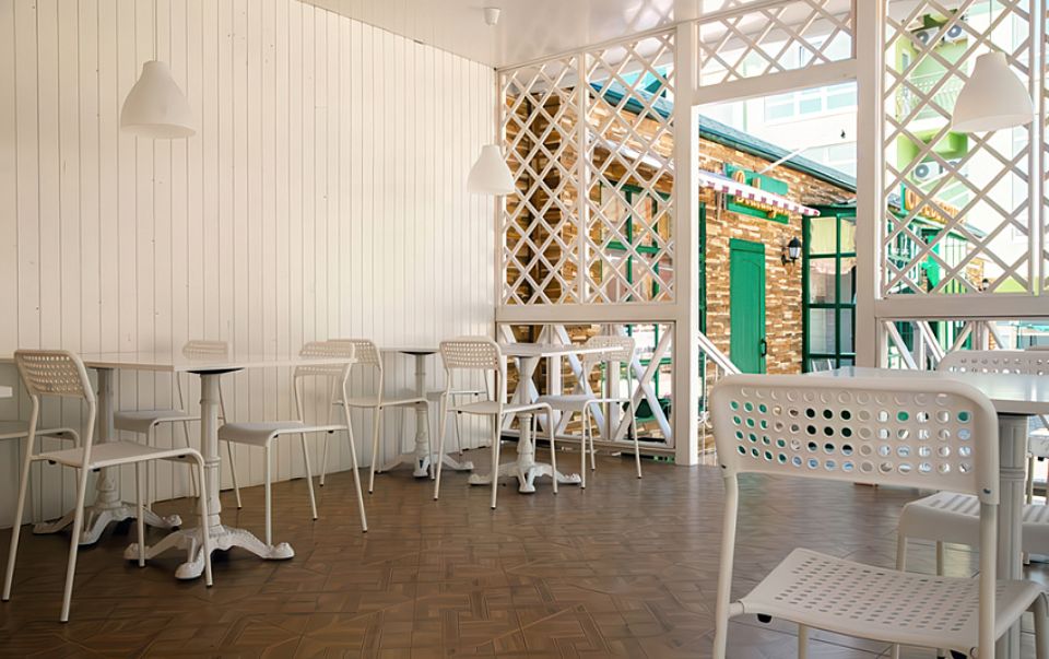 На территории «Лаванды» разместились уютные беседки и многочисленные столики со стульями для уединенного отдыха в окружении благоухающей зелени и прохладе фонтана с подсветкой. Все это позволят гостям приятно провести время.