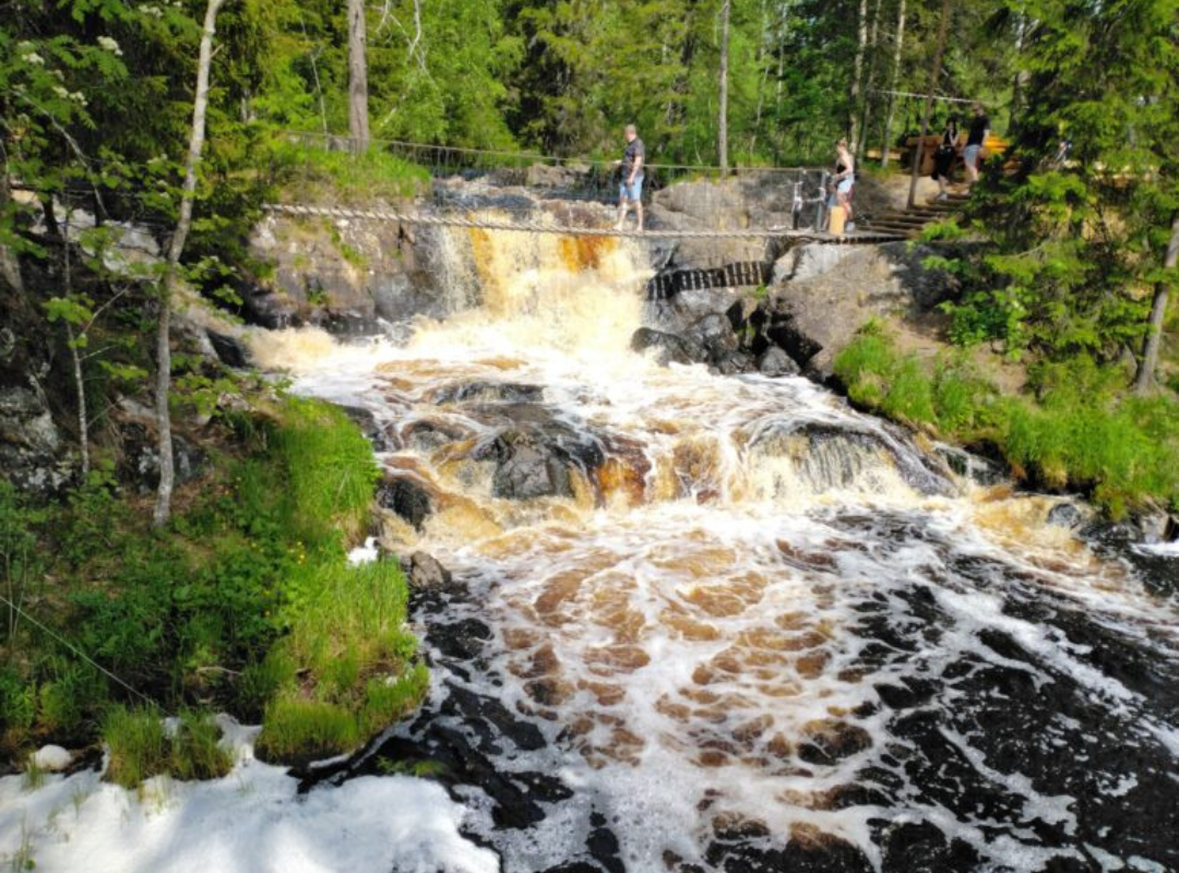 Отправляемся любоваться равнинными водопадами Ахвенкоски, очень шумными из-за каскадной формы. В свое время их красотой и величественностью впечатлились даже кинематографисты, включив Ахвенкоски в сцену последнего боя известнейшего фильма «А зори здесь тихие». Из-за большого содержания железа поток воды выглядит «ржавым», что смотрится особенно интересно и необычно. Прогулка по эко-тропе над водопадами, мы уверены, добавит вам адреналина, и заставит почувствовать себя настоящим путешественником без страха и упрека! (вход. билет за доп. оплату).