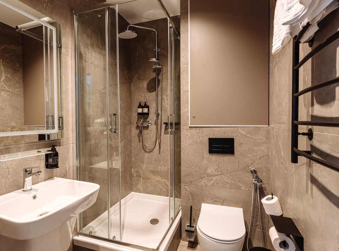 Просторные номера с ванной комнатой, телевизором и быстрым Wi-Fi.