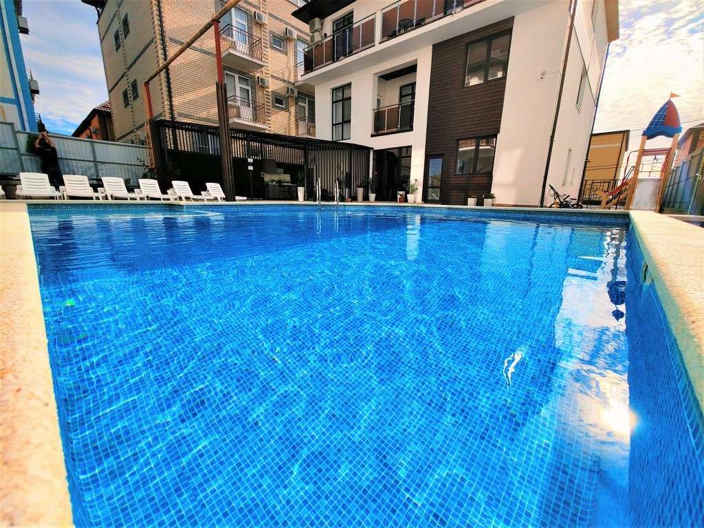 - бассейн с подогревом и детской зоной небольшая кухня для самостоятельного приготовления пищи мангал