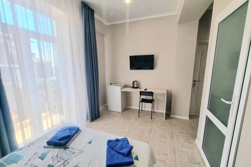 Номера 3-х «стандарт» (двуспальная кровать, односпальный диван, тумбочки, журнальный стол, шкаф для одежды, кондиционер, телевизор, холодильник, душ, санузел, холодная и горячая вода круглосуточно, балкон с мебелью).