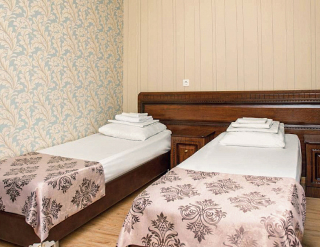 2-х и 3-х местные комфортабельные номера со всеми удобствами (душ, умывальник, туалет), телевизор, холодильник, кондиционер, Wi-Fi. Все комнаты оснащены системой комфортного сна «Garden sleep system».