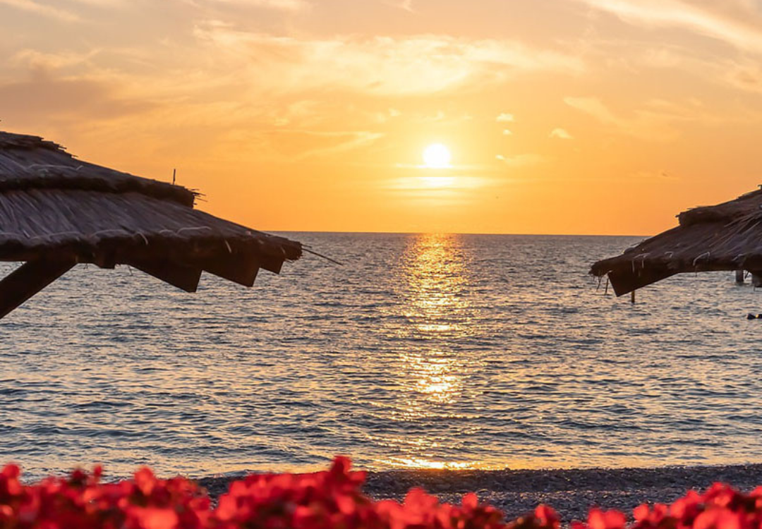 Пляжи здесь широкие, ухоженные, преимущественно галечные с удобным заходом в воду. Море тёплое, чистое и спокойное — особенно идеально для семей с детьми.