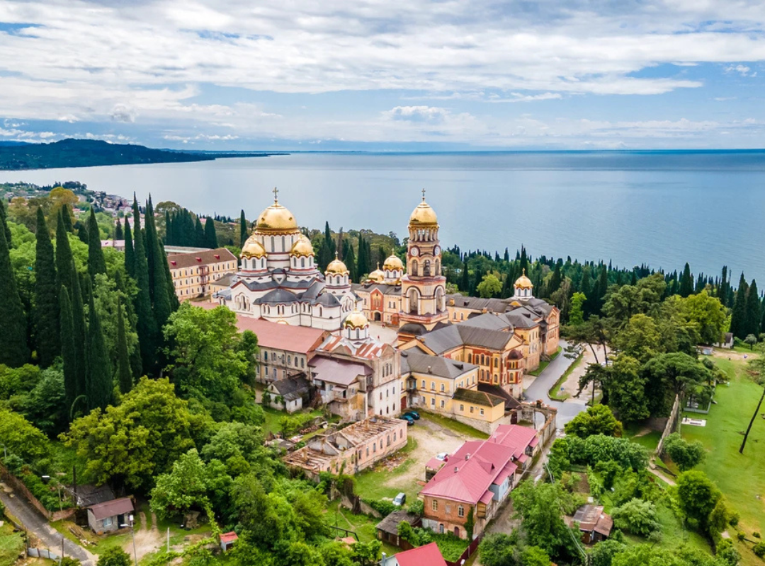 В завершении посещаем город Новый Афон. Здесь вы посетите мужской монастырь святого Симона Кананита. Это действующий мужской монастырь, основан в 1875 году монархом русского монастыря Святого Пантелеймона, для тех, кто желает (за отдельную плату) можно увидеть дачу Сталина и Новоафонскую пещеру, в глубь которой вас доставит электропоезд. Новоафонская пещера –это целый подземный город с огромными залами. Из 11 залов Вам покажут 6, другие зарезервированы для научной работы и расскажут об истории открытия пещеры, возникновения сталактитов и сталагмитов.