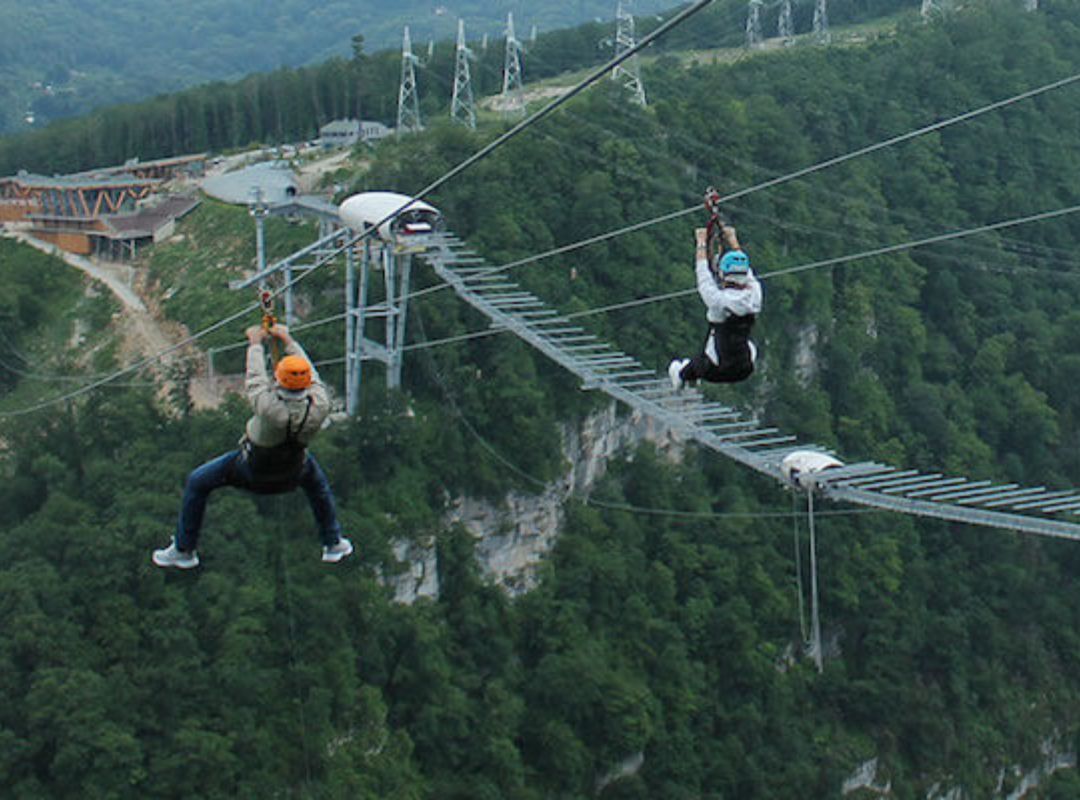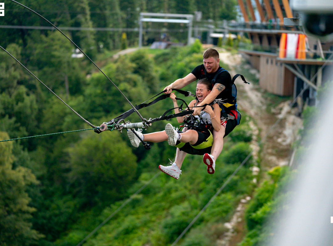 Здесь есть банджи - джампинг (платформы для прыжков с высоты 207 и 69 м), самые высокие в мире качели над пропастью, самый быстрый в мире мега тролл (скорость до 120 м/с) на высоте 200 м, детский верёвочный парк «Маугли», панорамный ресторан.
