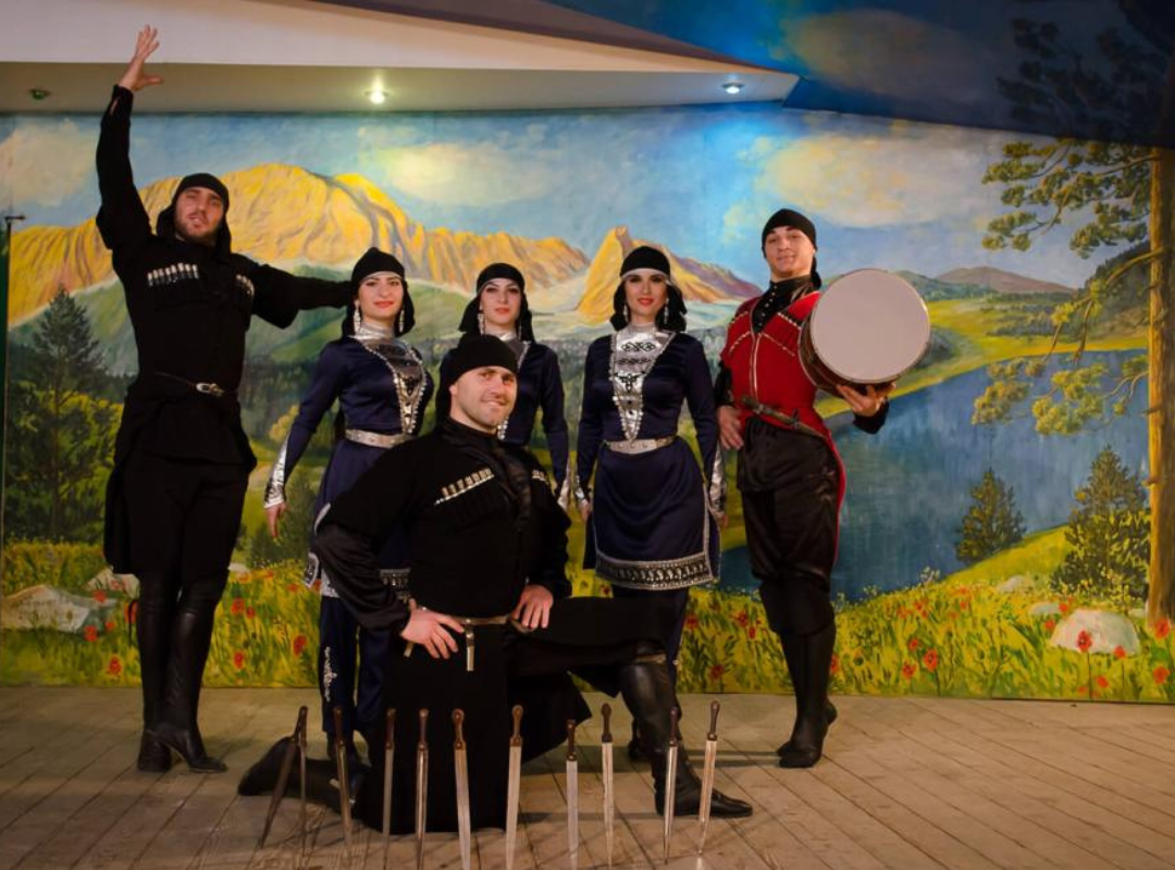 А вечером вы увидите зажигательное, национальное шоу. На сцене выступят артисты хореографического ансамбля. Яркие, великолепные костюмы, высокое исполнительное мастерство артистов захватывает зрителей с первого номера и держит на высоком эмоциональном подъеме до самого финала. Никого не оставит равнодушным искусство красноречивого тамады. Он превратит концерт в яркое шоу, а вы станете его активным участником и не раз выйдете на сцену танцевать лезгинку или произносить тосты. Это яркий, зрелищный, многолюдный праздник, который надолго останется в ваших сердцах.