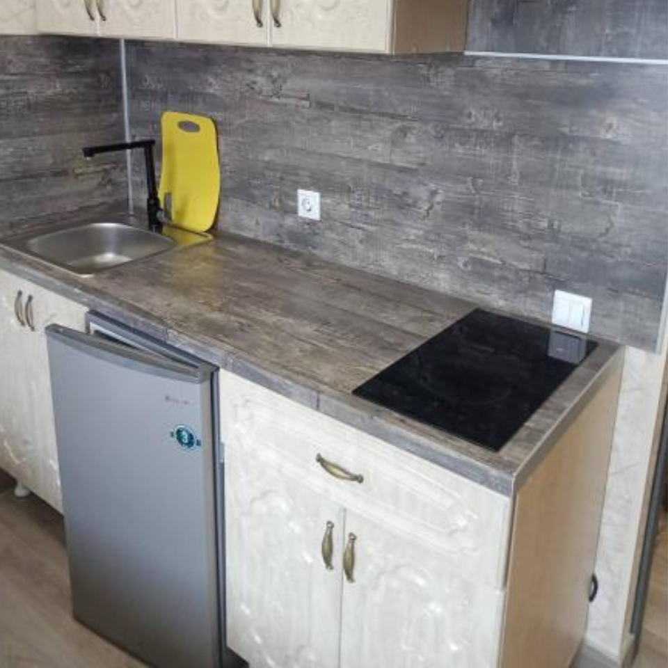 2. Номера Стандарт с кухней- отдельно стоящий 2-х местный домик и 3-х местный номер в одноэтажном корпусе на первой линии с удобствами (душ, туалет, умывальник), телевизор, холодильник, кондиционер и кухонный уголок.