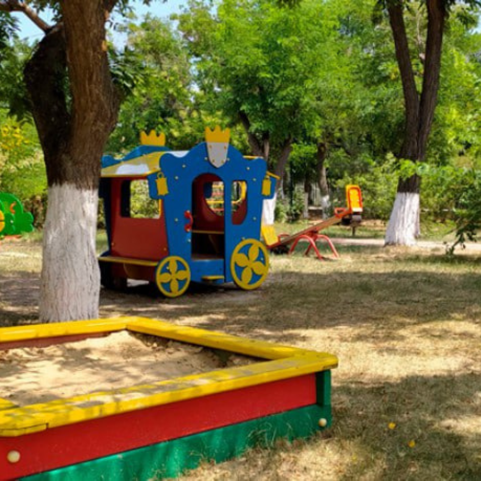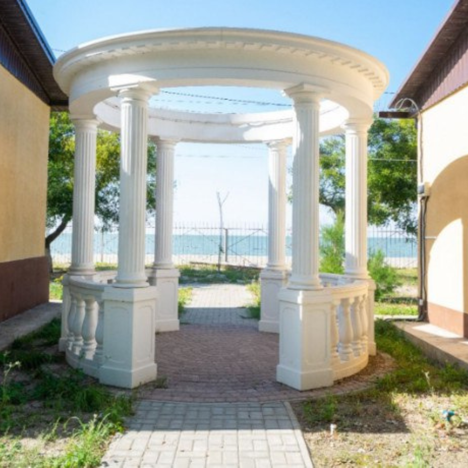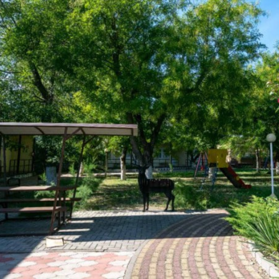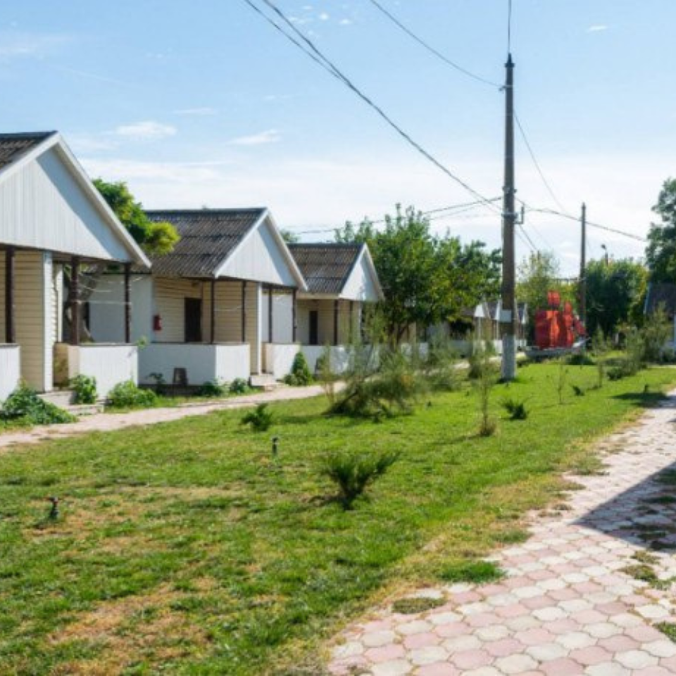 Закрытая территория в 6 гектаров включает в себе более 40 одноэтажных и двухэтажных корпусов и домиков, образующих уютный внутренний дворик-зеленый оазис с обилием цветников, зеленых лужаек, розарием, ароматом фруктовых деревьев и журчанием воды из многочисленных фонтанов. Одновременно база отдыха может разместить 450 отдыхающих.