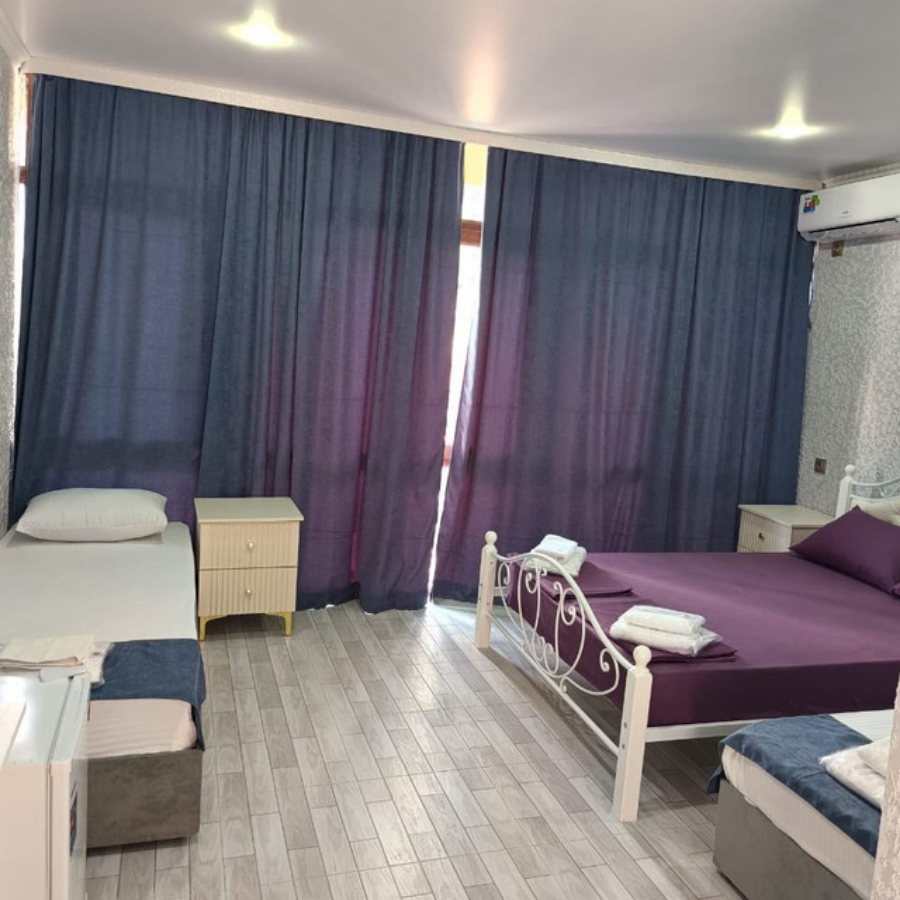3-х / 4-х местный номер стандарт - однокомнатный номер с двуспальной кроватью и 2-мя односпальными кроватями.