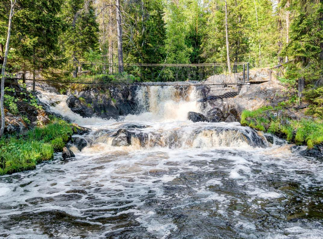 Отправляемся любоваться равнинными водопадами Ахвенкоски, очень шумными из-за каскадной формы. В свое время их красотой и величественностью впечатлились даже кинематографисты, включив Ахвенкоски в сцену последнего боя известнейшего фильма «А зори здесь тихие» (входной билет за доп.плату)!