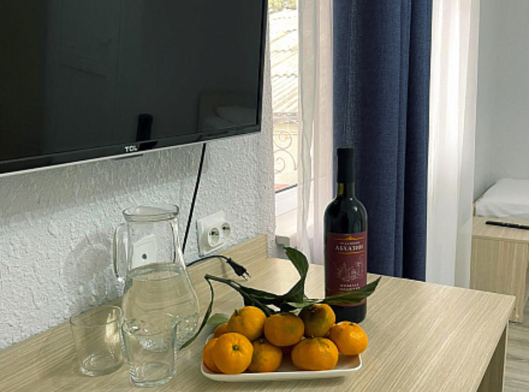 В номере - душ, умывальник, туалет, TV, кондиционер, фен, WiFi. На каждом этаже для общего пользования имеются: холодильник, сушилки для белья, гладильные доски с утюгом, на первом этаже к услугам отдыхающих стиральная машина (платно 200 руб).