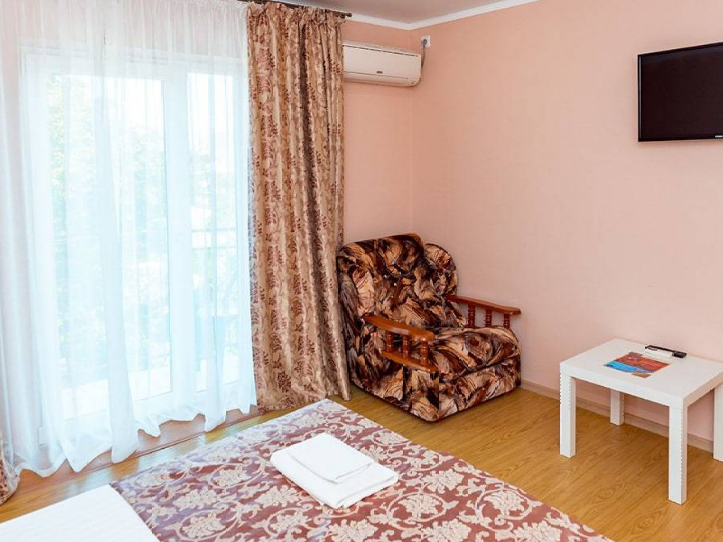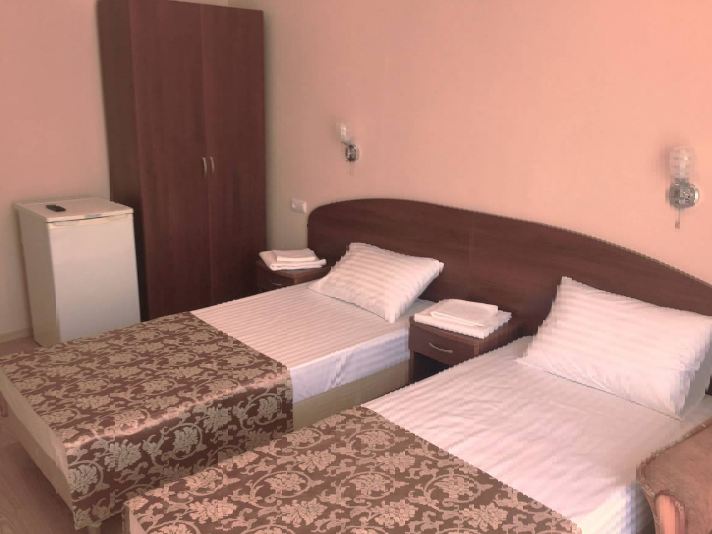Для гостей предлагаются обновленные номера с удобствами без балкона на 4 этаже и новые очень комфортабельные 2-х местные номера на 1 этаже. Все номера с удобствами -душ, умывальник, туалет, холодильник, телевизор, кондиционер. В корпусе предлагается оборудованная кухня с набором посуды для самостоятельного приготовления.