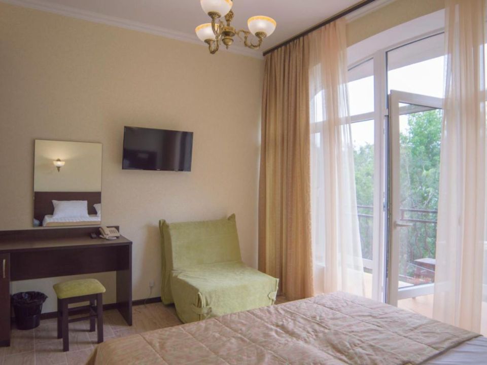 Номерной фонд: Номера 2-х «стандарт» (площадь 20 м², двуспальная или две односпальные кровати, кресло-кровать, прикроватные тумбочки, стол, стулья, шкаф, кондиционер, телевизор, холодильник, чайник, фен, душ, санузел, холодная и горячая вода круглосуточно, балкон). Количество спальных мест: 3. Номер 2-х «делюкс» (площадь 28 м², двуспальная или две односпальные кровати, 1,5-спальный диван, прикроватные тумбочки, стол, стулья, шкаф, кондиционер, телевизор, холодильник, чайник, фен, душ, санузел, холодная и горячая вода круглосуточно, балкон). Количество спальных мест: 3.
