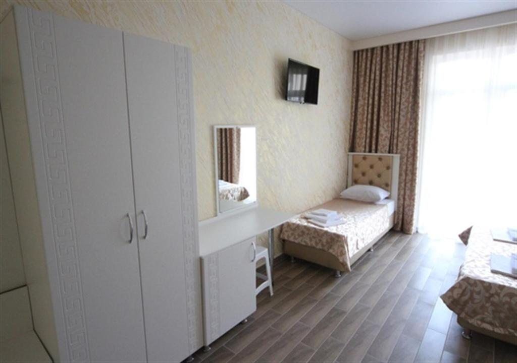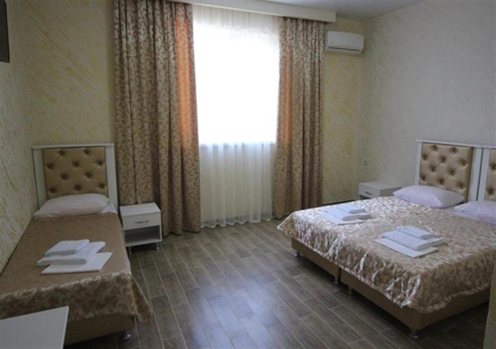 Номера 4-х «стандарт» (двуспальная кровать, две односпальные кровати, тумбочка, шкаф, кондиционер, телевизор, холодильник, фен, душ, санузел, холодная и горячая вода круглосуточно, балкон).