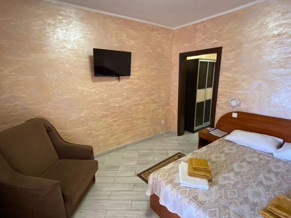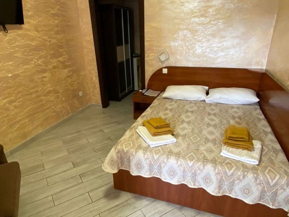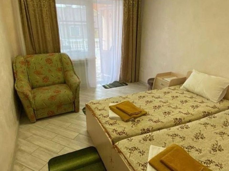 2-местный номер с удобствами категории Standard (Double/Twin) (15 кв.м). В номере: 2 односпальные кровати или 1 двуспальная, телевизор, холодильник, кондиционер, необходимый набор посуды, набор из 2-х полотенец на каждого гостя, санузел. Номера с балконом, вид на бассейн либо на дорогу. Дополнительное место – раскладное кресло для детей до 10 лет. Максимальное размещение – 2 осн. места + 1 доп. место.