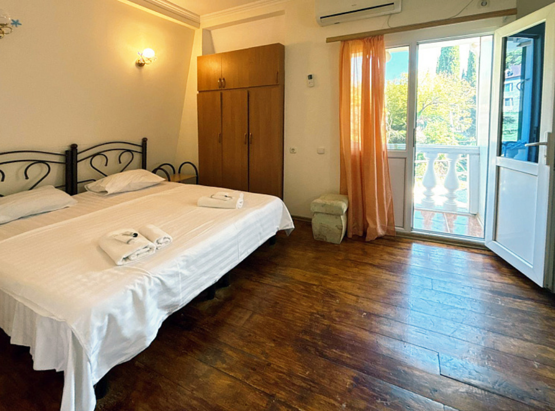 В номерах - набор стандартной мебели, туалет, умывальник, душ, кондиционер, телевизор, холодильник, выход на общую террасу или свой балкон. В некоторых номерах возможно дополнительное место для детей до 12 лет.