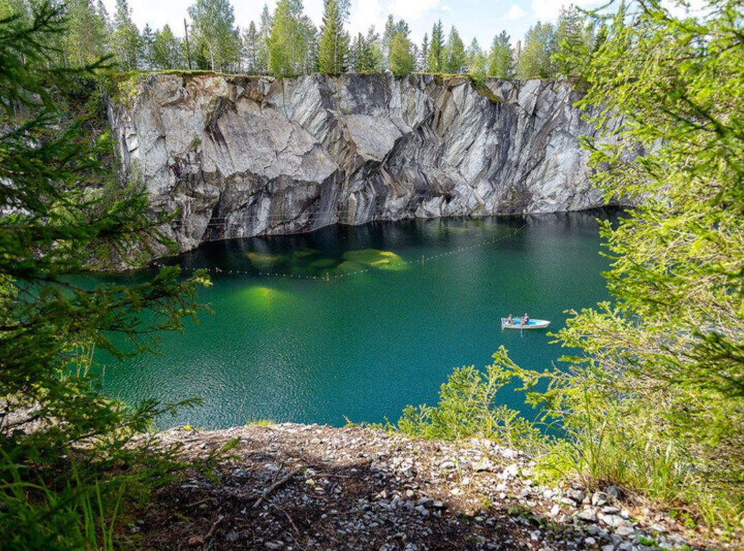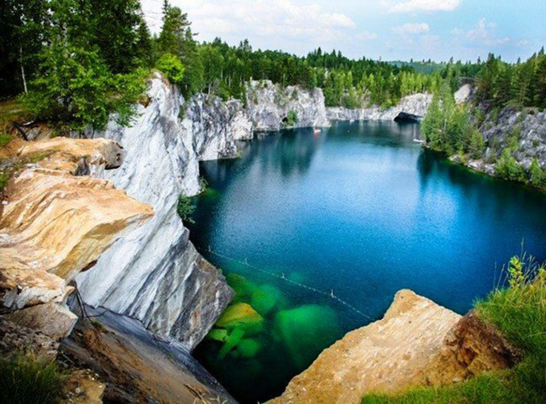 Посещение мраморного каньона Рускеала (входные билеты – доп.плата). У Вас будет свободное время неспешна прогуляться по мраморным аллеям, увидеть отвесные берега мраморных озер с прозрачной водой в красивейшей чаше из рускеальского мрамора с оборудованными смотровыми площадками.