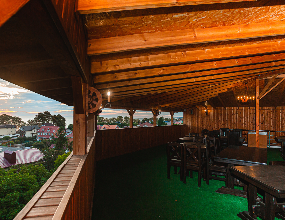 Для гостей предоставляется 3-х разовое комплексное питание (есть возможность выбора комплекса). Завтрак и обед - в столовой на первом этаже, а ужин – на панорамной площадке ресторана на крыше с видом на море в романтической атмосфере. Отдельное внимание заслуживает кухня во главе с профессиональным шеф-поваром, предоставляющая гостям домашнее питание.