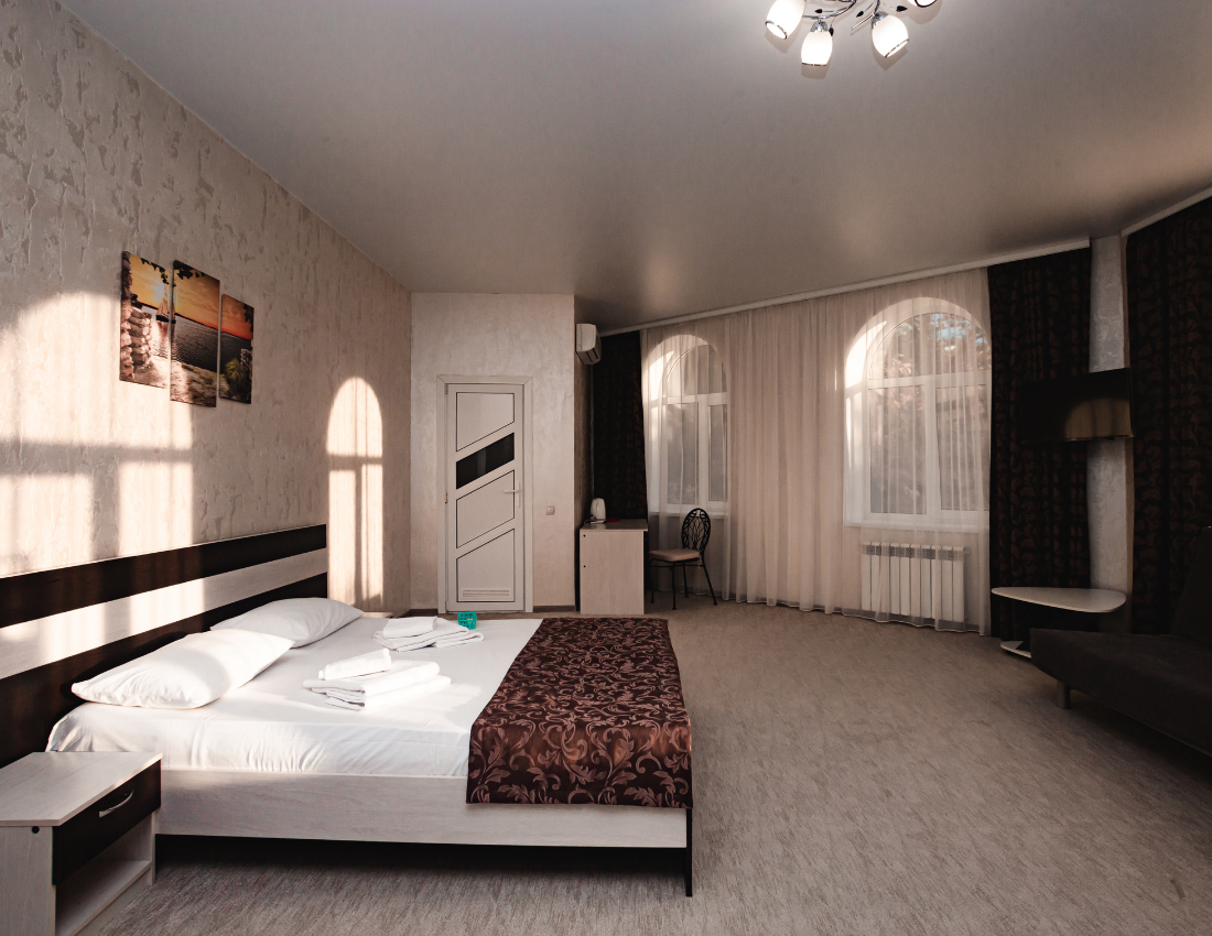 Все номера оснащены одинаково: душ, умывальник, туалет, кондиционер, холодильник, телевизор, сейф, чайник и чайная посуда, фен. Категории отличаются только их месторасположением – в корпусе с лифтом или без лифта. В номерах имеются гостевые принадлежности - индивидуальный комплект банных и лицевых полотенец, предметы личной гигиены, тапочки, сушилка для белья. Номера без индивидуальных балконов, но с выходом на галерейную террасу этажа. Там же устанавливаются сушилки для белья и гладильные доски с утюгом.
